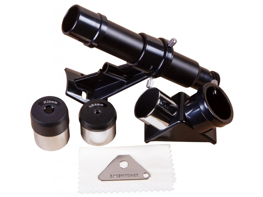 Sada tiež obsahuje dva okuláre s rôznou ohniskovou vzdialenosťou (SR4mm (125x), H20mm (25x) ) a diagonálne zrkadlo. S okulárom s dlhou ohniskovou vzdialenosťou môžete pozorovať rozšírené oblastí oblohy (Saturn a jeho mesiace), s okulárom s krátkou ohniskovou vzdialenosťou môžete pozorovať detailné planéty alebo mesačný povrch a s diagonálnym zrkadlom pozorujete pozemské objekty.