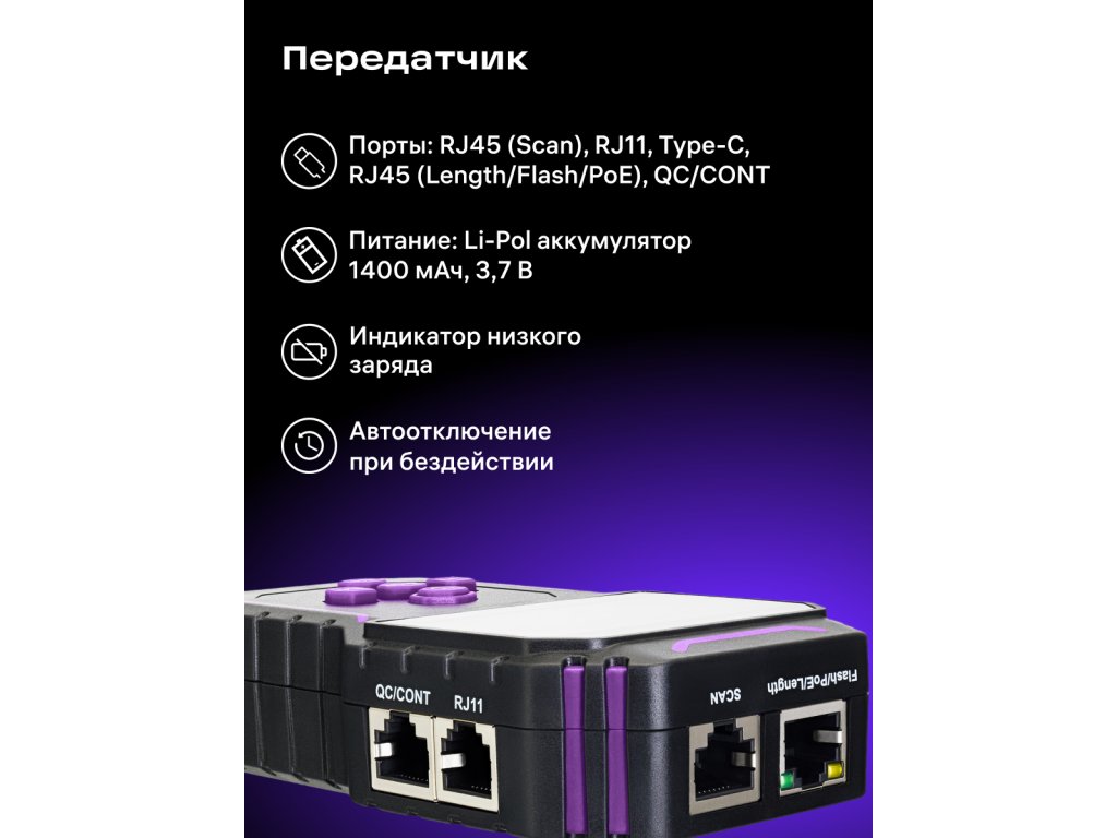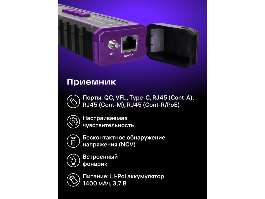 The device is designed for testing STP/UTP network cables of 5E/6/6A categories as well as for the additional detection of telephone and electrical cables.