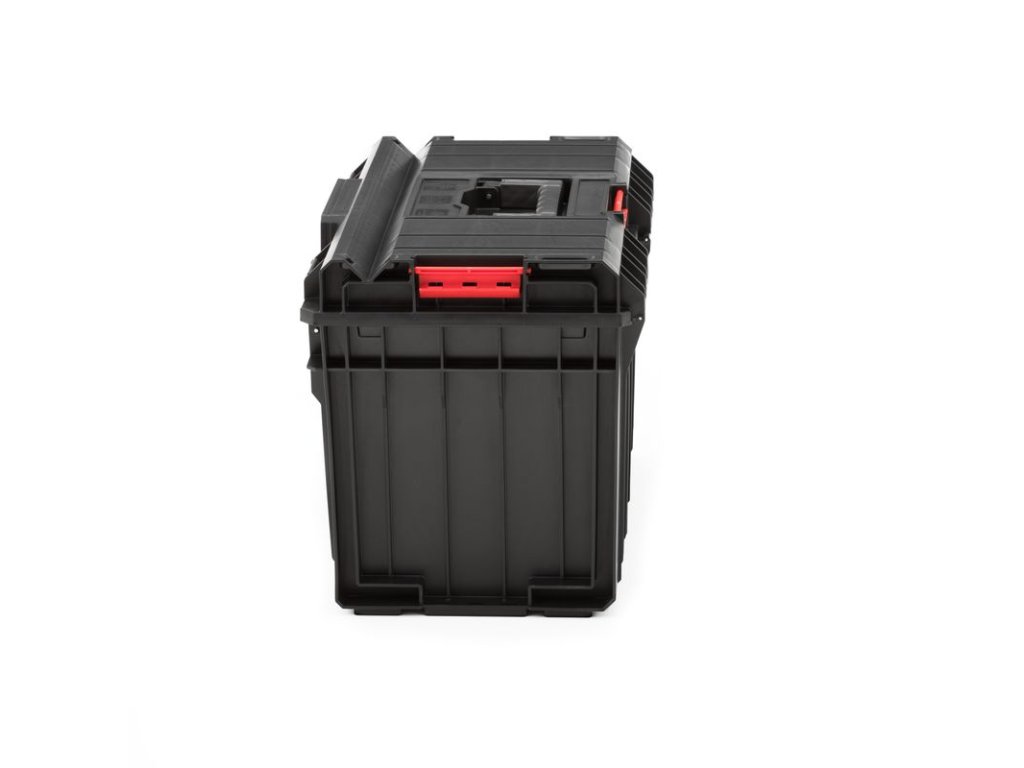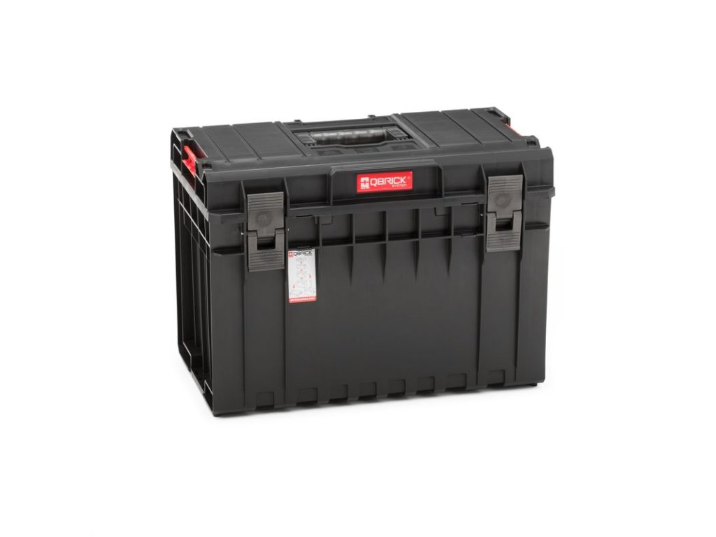 Praktický kufor pre náradie QBRICK System One, ktorý vám poskytne mnoho miesta pre Vaše náradie. Vo vnútri je plastový vyberateľný organizér pre uloženie vášho náradia. Vďaka praktickej rukoväti ho viete bezpečné nosiť aj pri plnom naložení. Bezpečný uzatvárcí systém pre zabezpečenie náradia. Toolbox je vyrobený z pevného materiálu, čo zaistí dlohodbú životnosť a odolnosť. Vhodný pre každého domáceho majstra, kutila.ONE 450 je veľký box na náradie s objemom 52 l. Je schopný poňať veľké množstvo náradia. Každá skrinka na náradie je vybavená flexibilným tesnením, ktoré poskytuje úplnú ochranu proti prachu a vode. Taktiež je vybavená dvomi nastaviteľnými priehradkami - jedna s elastickými popruhmi a druhá s priehradkou Multi, čo uľahčuje udržiavanie poriadku vo vnútri skrinky na náradie vďaka rôznym držiakom na ručné náradie. Odnímateľnú multi prepážku možno použiť ako samostatný nosič náradia. Veko vo verzii Basic je vybavené funkčným otvorom na rezanie a meranie. Vystužené veko a telo zaisťuje vysokú nosnosť (50 kg) a odolá tlaku až 120 kg, čo vám dáva možnosť vytvoriť si pohodlnú pracovnú plošinu.