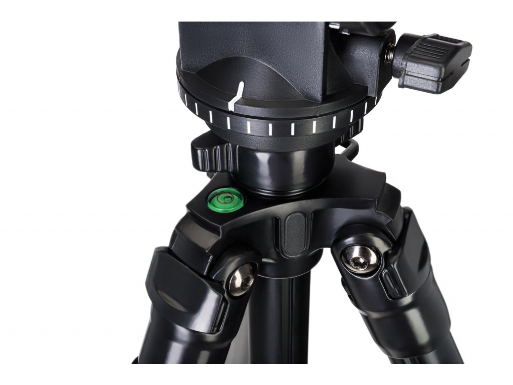 Hlava statívu sa ovláda špeciálnou pákovou rukoväťou. Je možné ju otáčať horizontálne o 360°, zdvíhať alebo spúšťať. Všetky tieto smery sú vybavené aretačnými gombíkmi. Výška každej nohy sa dá nastaviť samostatne. Vyklopením otvoríte zámok, vysuniete príslušnú sekciu a zámok zacvaknete. Stredový stĺpik je možné zdvihnúť. Statív Levenhuk Level PLUS VT30 je vybavený bublinkovou vodováhou, vďaka ktorej si uľahčíte nastavenie kamery rovnobežne so zemou. Obsahom sady je aj púzdro na prenášanie a skladovanie.